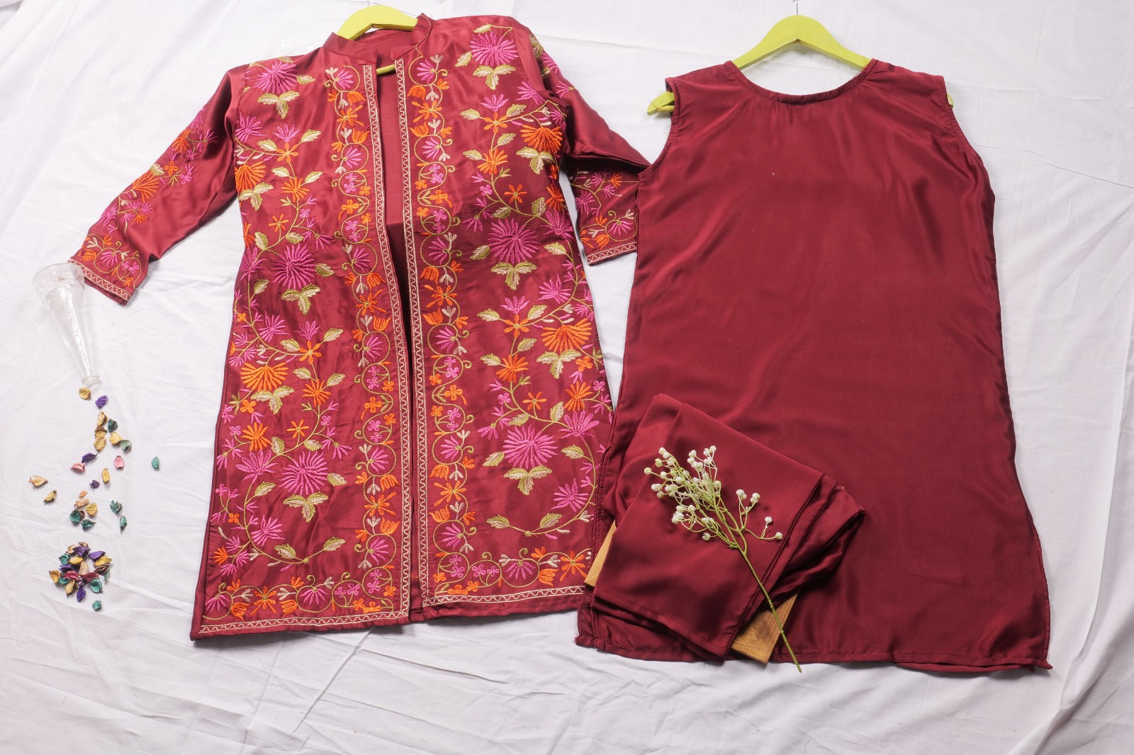 Multi Embrodery Gown 3pc😍